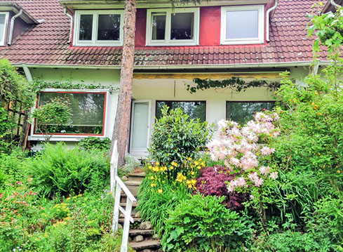 Das gepflegte Reihenmittelhaus befindet sich in letzter Reihe einer kleinen Reihenhaussiedlung, in einer Sackgasse mit ruhiger und grüner Lage, und trotzdem zentral in Hamburg Volksdorf/Bergstedt. Die Terrasse ist groß, sonnig und liegt nach Süd-West.