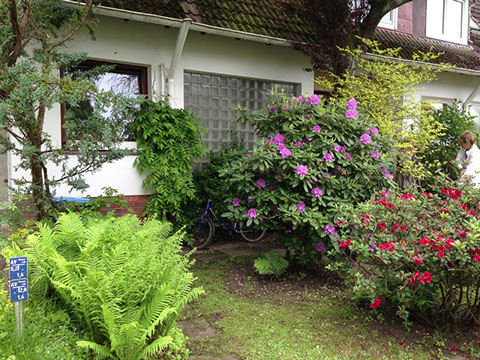 Zum Haus gehören ein Vorder- und ein Hintergarten, mit etwa 50qm und 200qm , incl. Grundfläche Haus -> ca 350qm Eigenland.